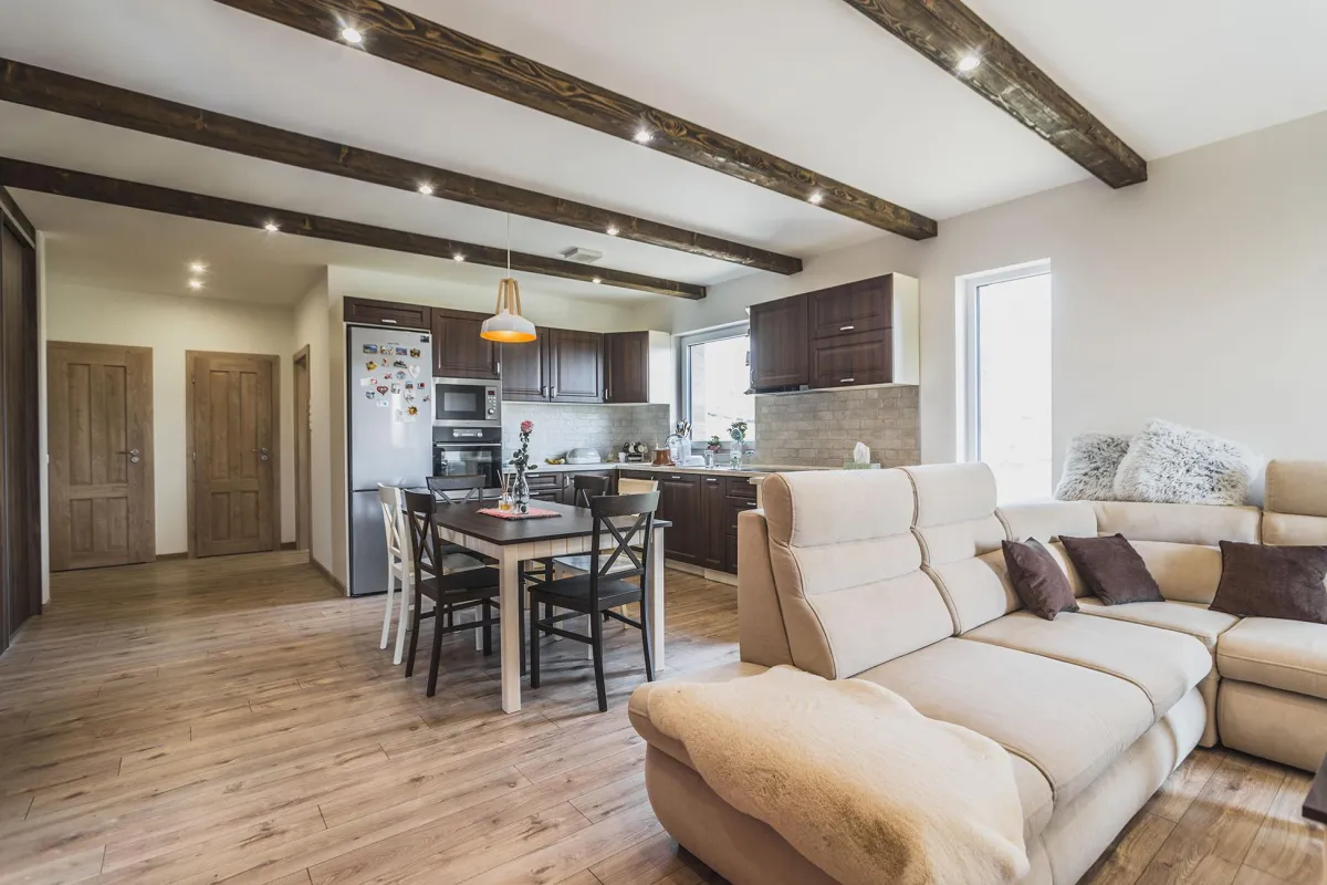 Jedinečná atmosféra, mierne éterický nádych dreva, prísun prírodnej energie. Drevené hranoly sú dômyselne zaklopené OSB doskami a zabudované do sadrokartónového systému! Moderné technológie umožňujú stavať montované domy, ktoré sú oveľa kvalitnejšie, majú lepšie zvukové aj tepelné izolácie a samozrejme aj remeselné spracovanie panelov, pričom ich montáž je na úplne inej úrovni ako kedysi. Po zhotovení je nízkoenergetický montovaný dom ťažko rozoznateľný od klasického murovaného domu.